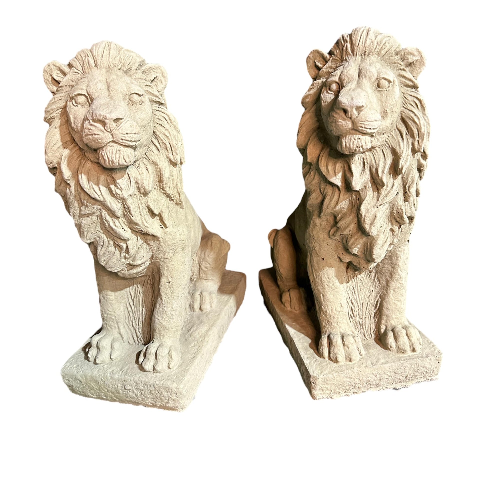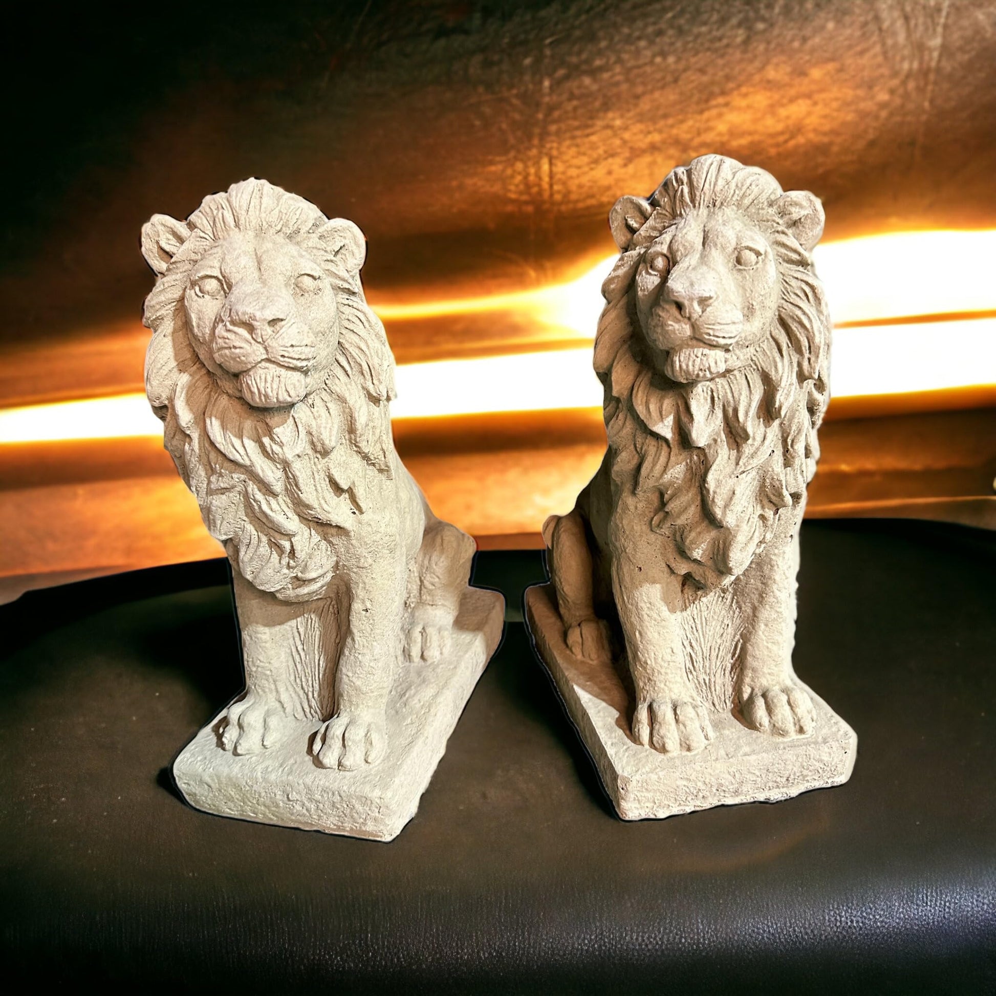 2er Set frostfeste Löwenfiguren Ari & Lev auf Sockel aus Deutschland - Robuste Steinfiguren für Garten und Terrasse