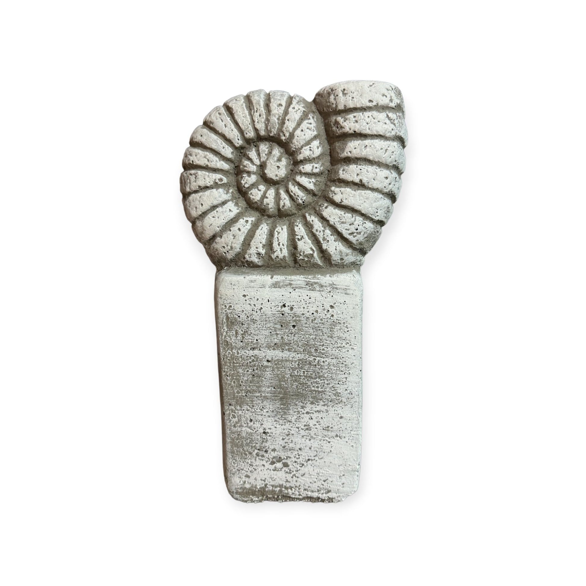 Ammonit auf Säule in Grau: Massiver Steinguss, 4kg, 27x14x9 cm, Frostsicher