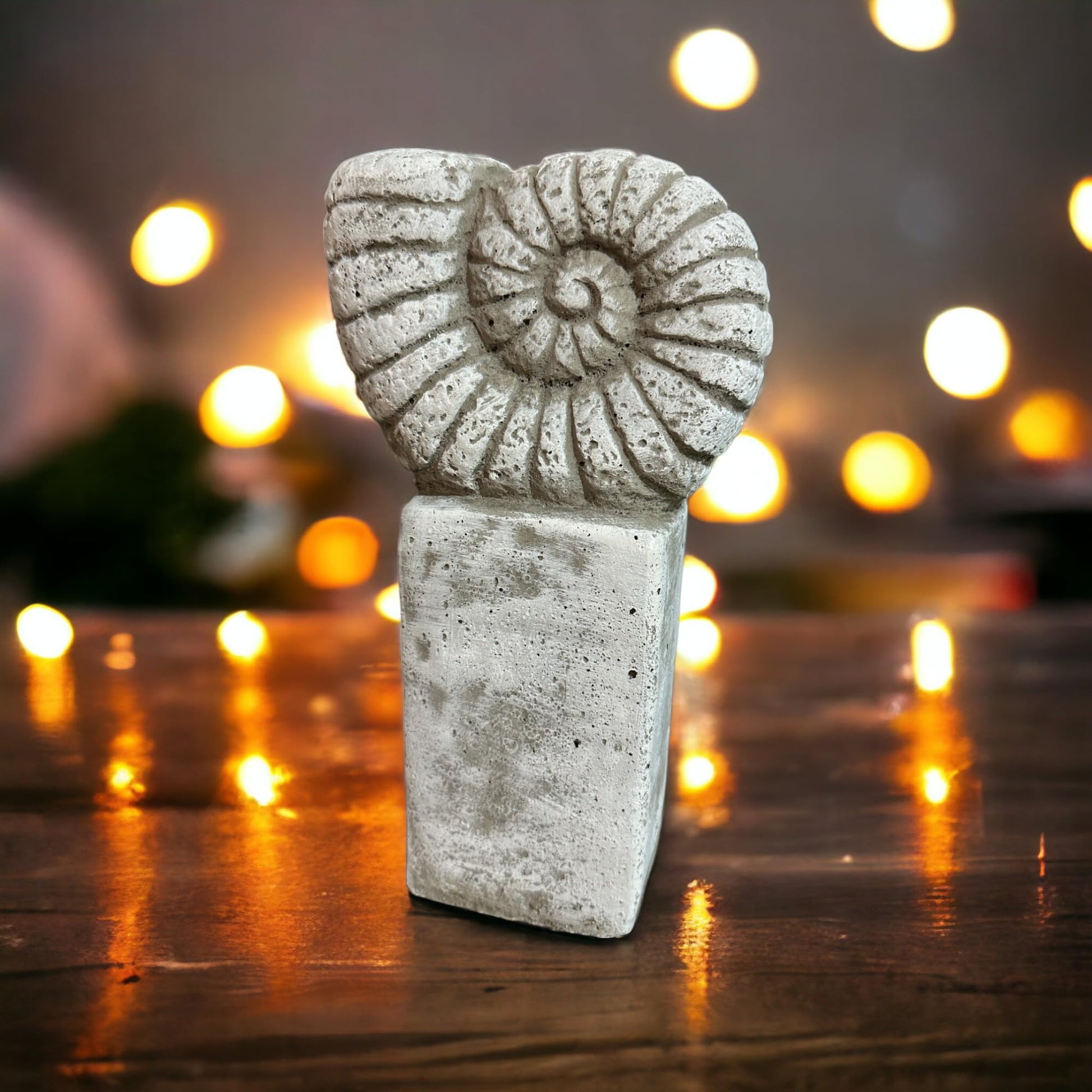 - Ammonit auf einer Säule aus massivem Steinguss.