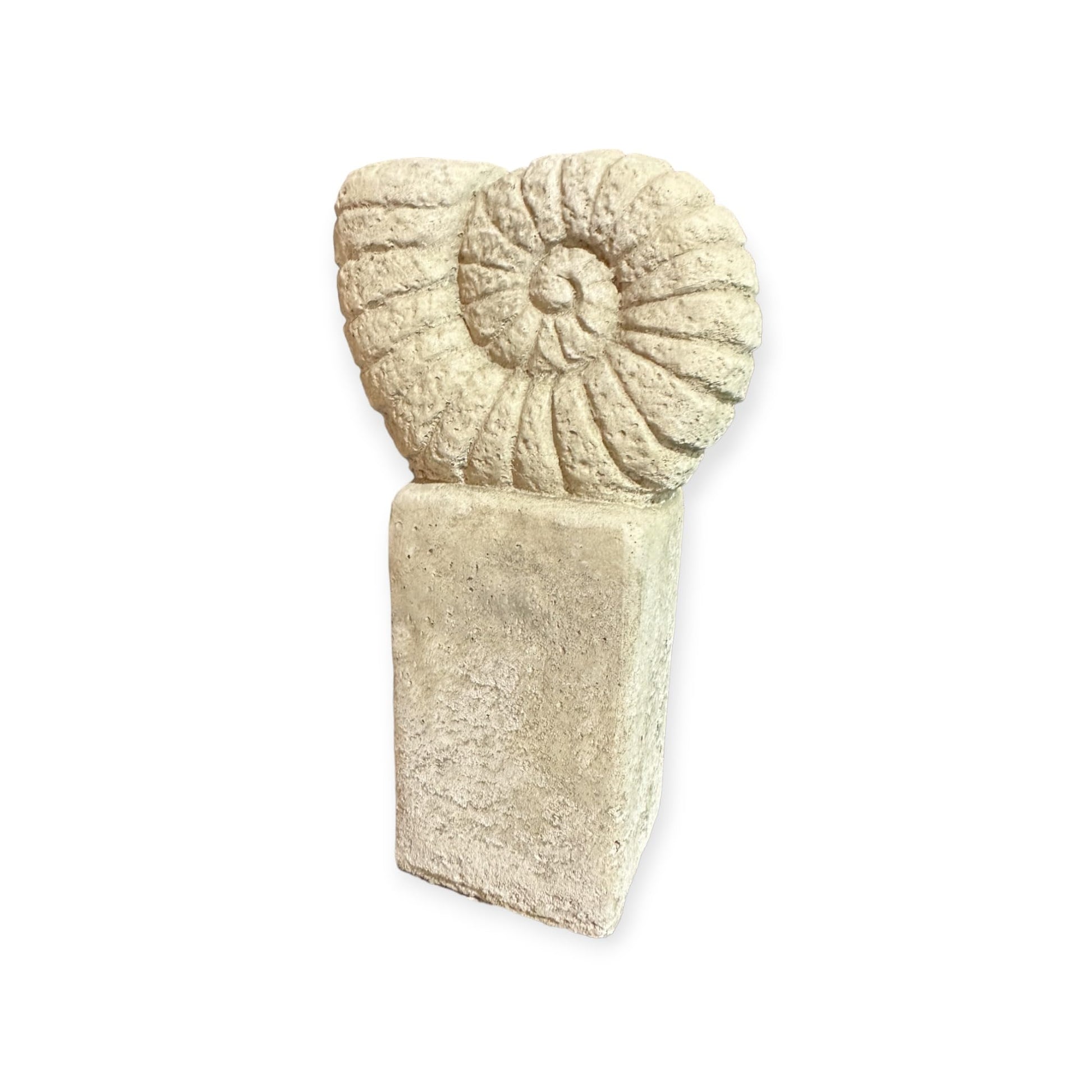 Ammonit auf Säule: Massiver Steinguss, 4kg, 27x14x9 cm, Frostsicher