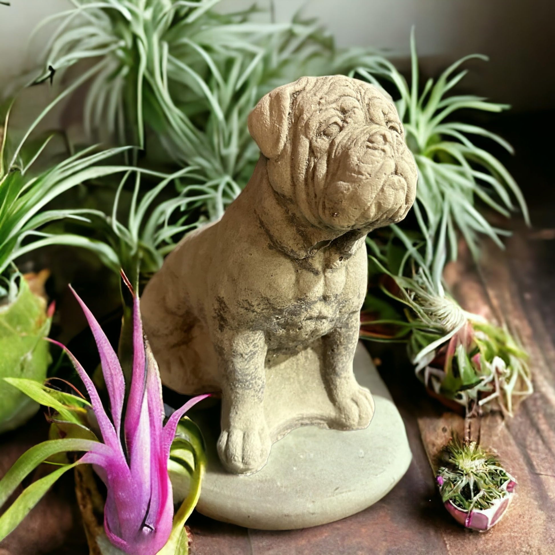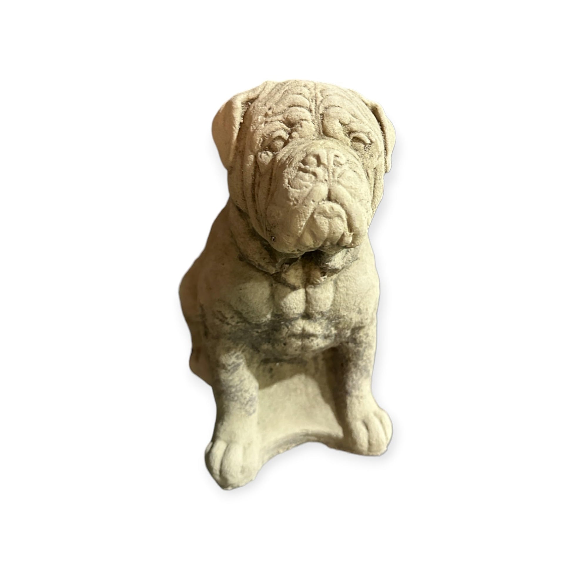 - Bordeauxdogge als massive Steinfigur aus Steinguss/Beton.