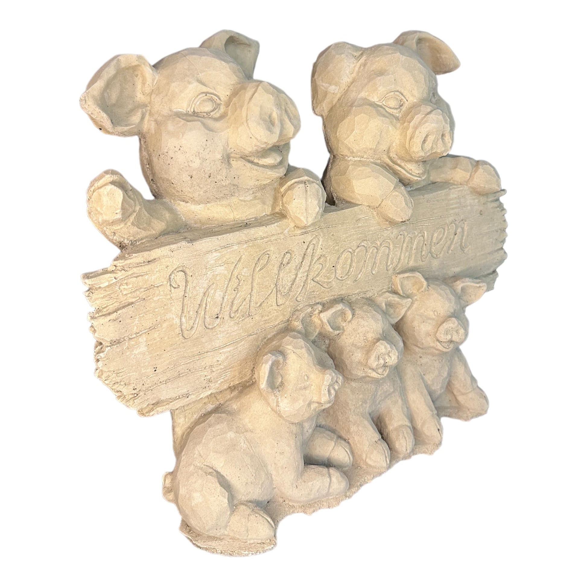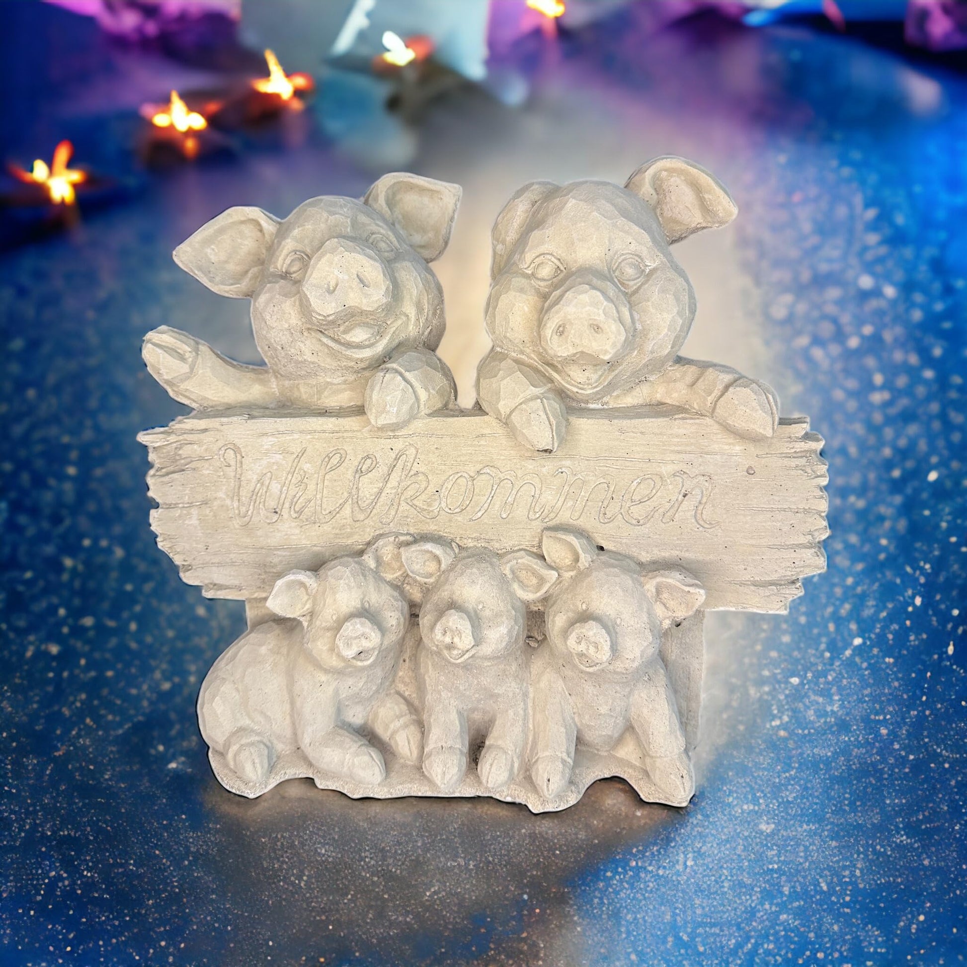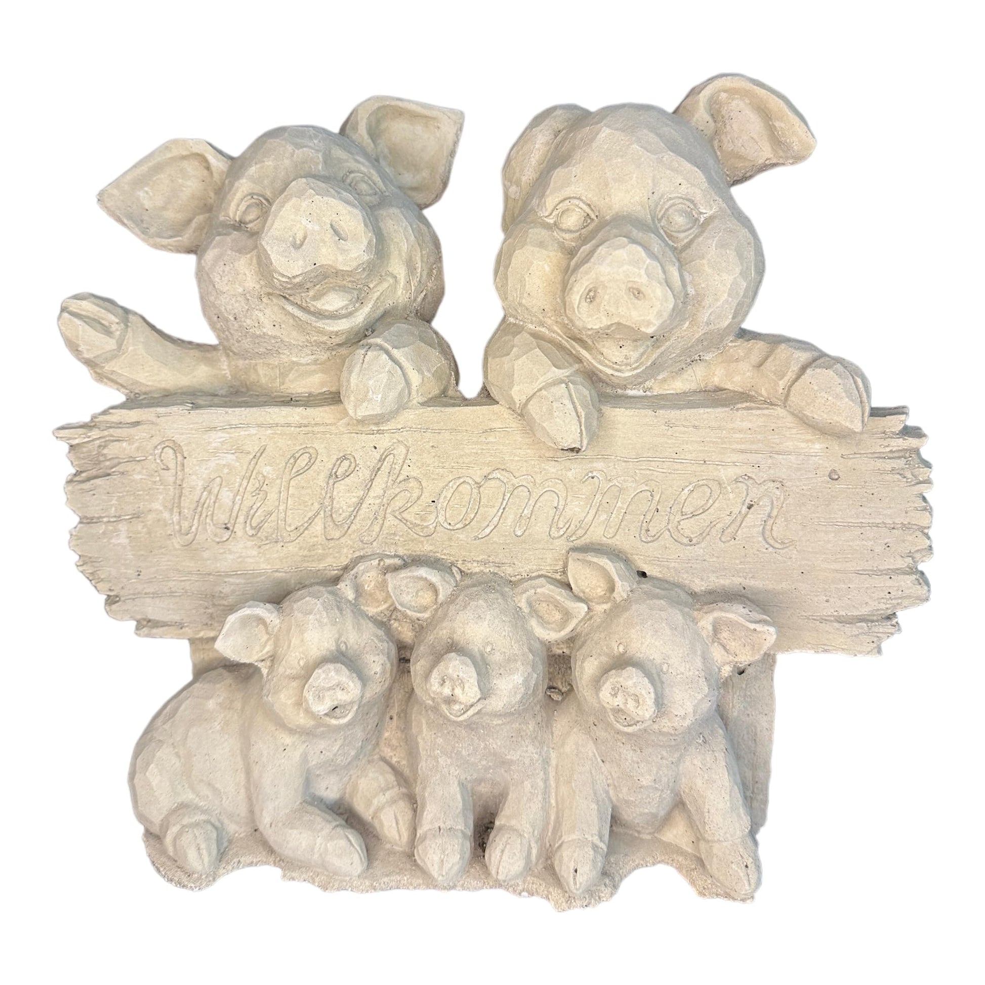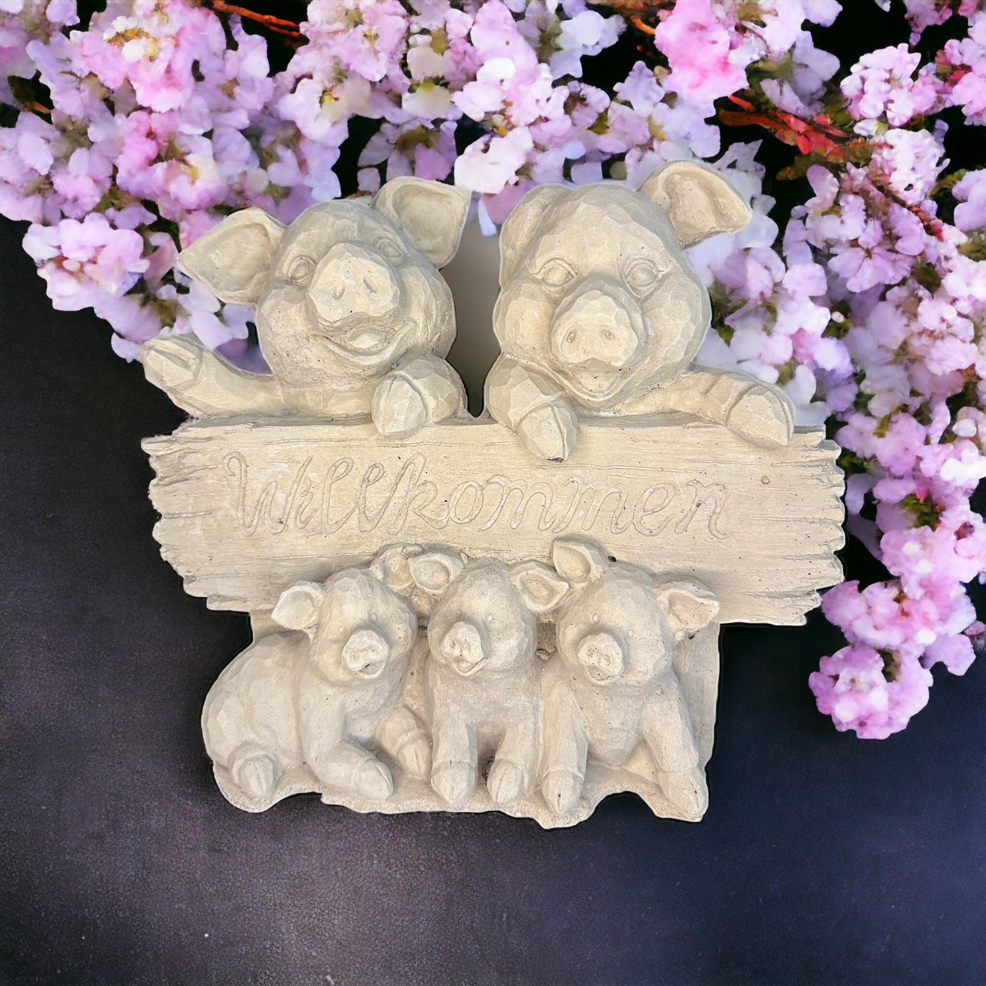 - Beschreibung: Begrüßen Sie Ihre Gäste mit einem herzlichen Lächeln, indem Sie unsere bezaubernde Schweinefamilie mit Willkommensschild vor Ihrer Tür platzieren. Diese handgefertigte Steinguss-Skulptur aus Deutschland strahlt nicht nur Charme aus, sondern verleiht auch Ihrem Zuhause oder Garten eine einladende Atmosphäre.