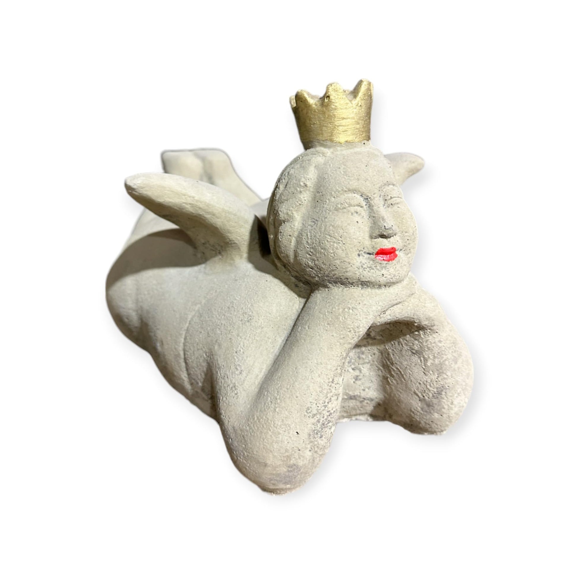 Dicke Prinzessin mit Krone - Massiver Steinguss, Handgefertigt in Deutschland, 8,4 kg, H/B/T 18/18/33