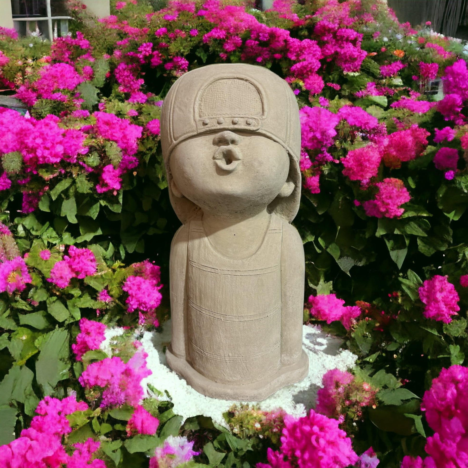 Steinjunge Ben zum Bepflanzen: Massiv, Frostsicher, 15kg, 42x23x15 cm, Eigene Produktion, Mit Wasserablauf