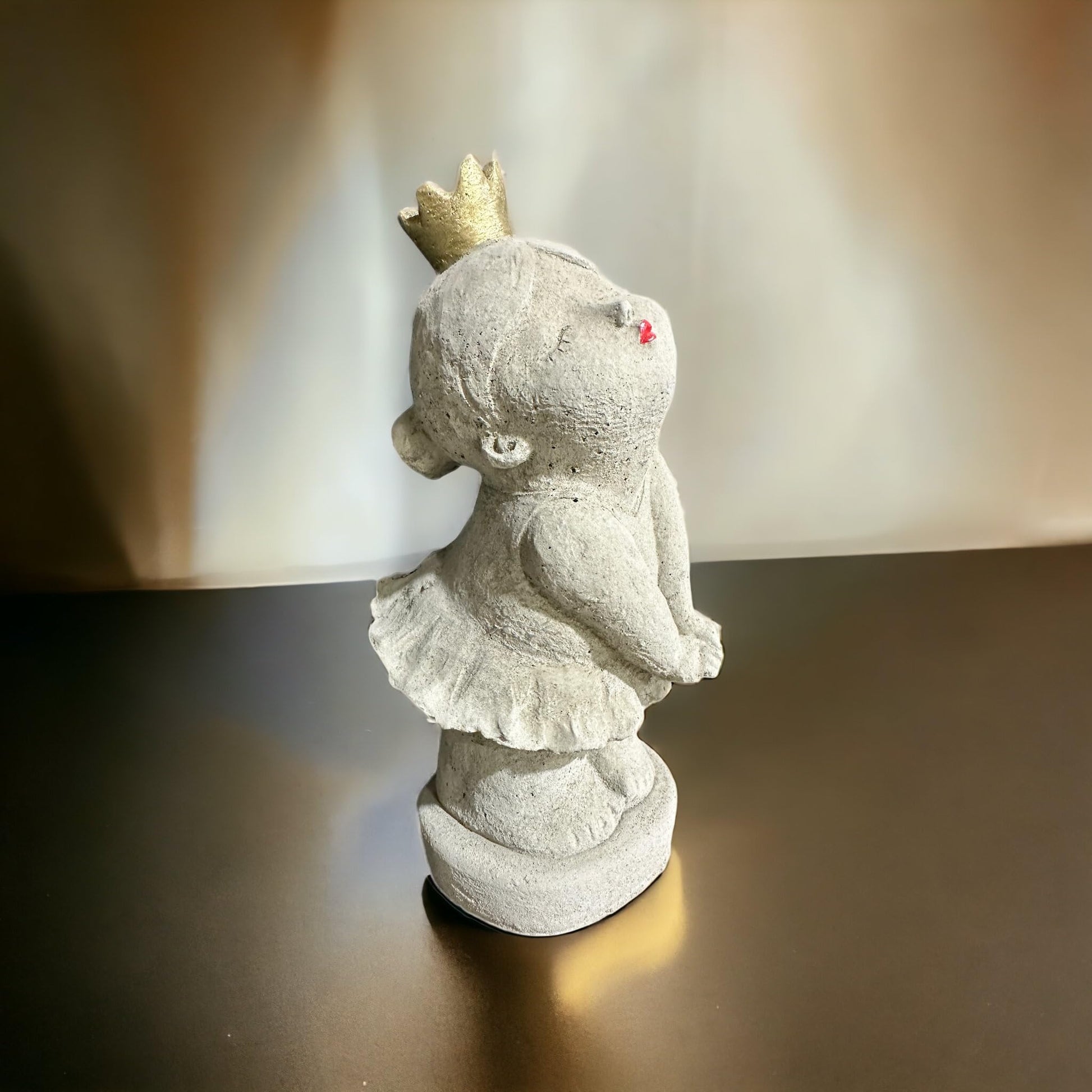 - Hochwertiges Material: Unsere Ballerina wird aus erstklassigem, frostbeständigem Steinguss gefertigt, um sicherzustellen, dass ihre Anmut das ganze Jahr über im Freien glänzen kann. Die goldene Krone verleiht dieser Skulptur einen Hauch von königlichem Charme, während die sorgfältige Handwerkskunst jede Bewegung der Ballerina mit Anmut einfängt.
